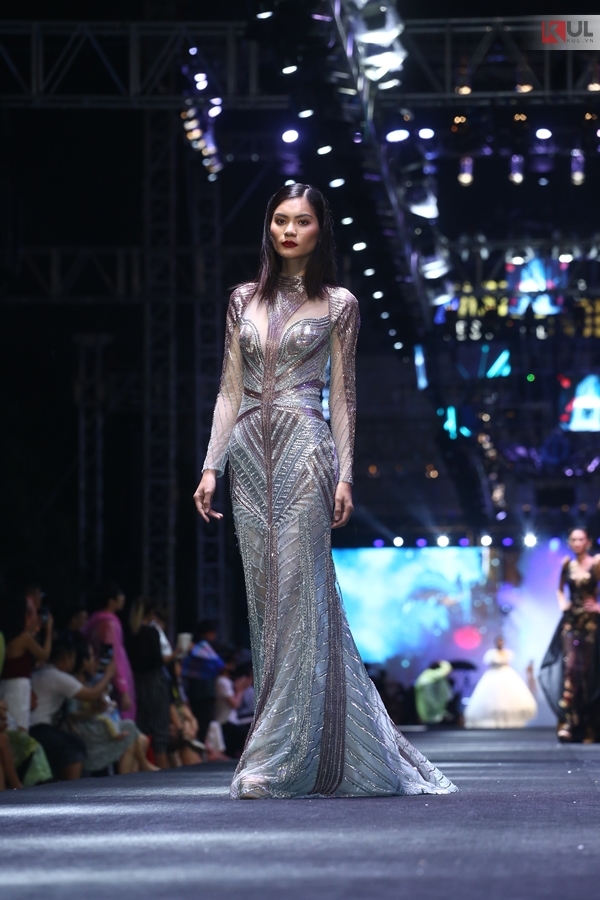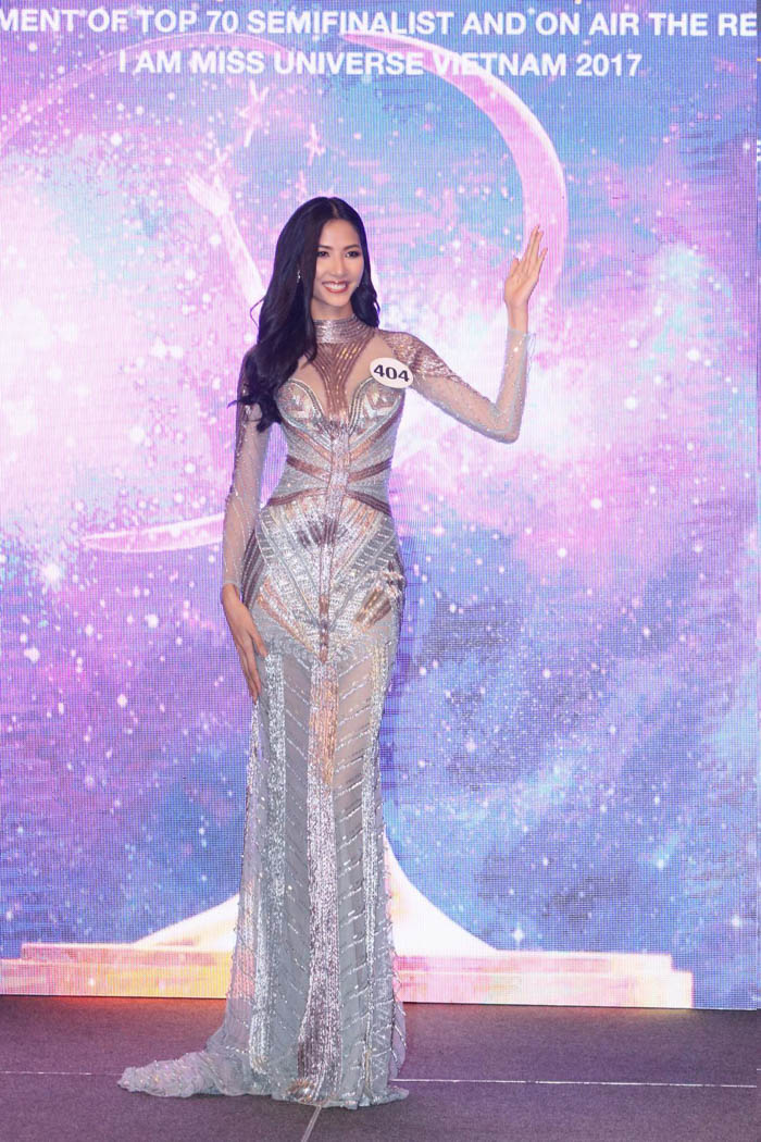 Nhờ chiếc đầm, Hoàng Thùy “lấn át” tất cả các thí sinh tại sự kiện và là tâm điểm thu hút truyền thông.