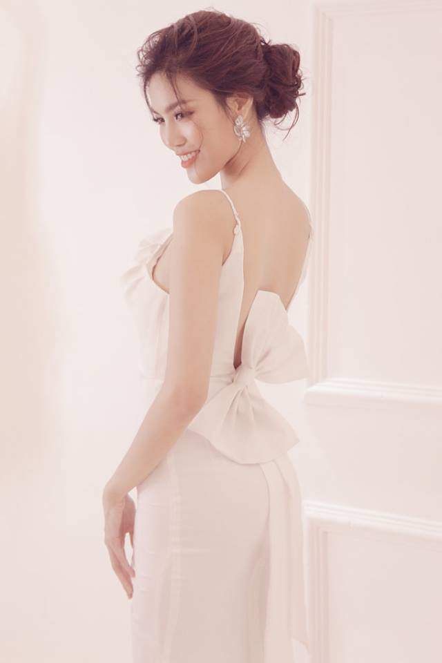 …Cùng chi tiết nơ lệch sau lưng làm điểm nhấn.