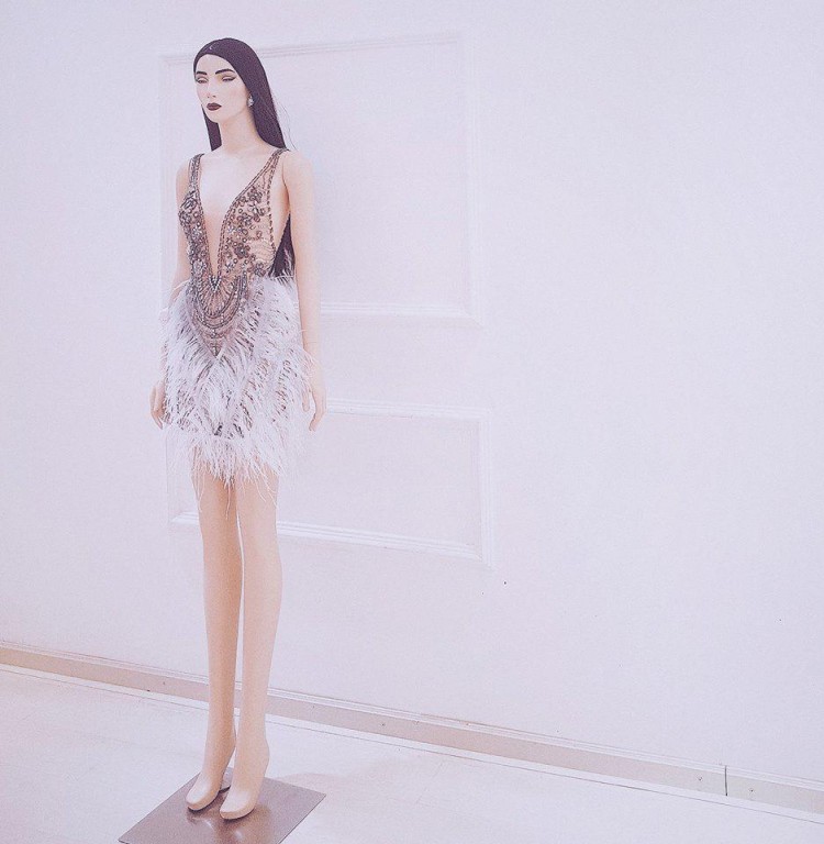 Váy đính kết lông vũ nhẹ nhàng, bay bổng