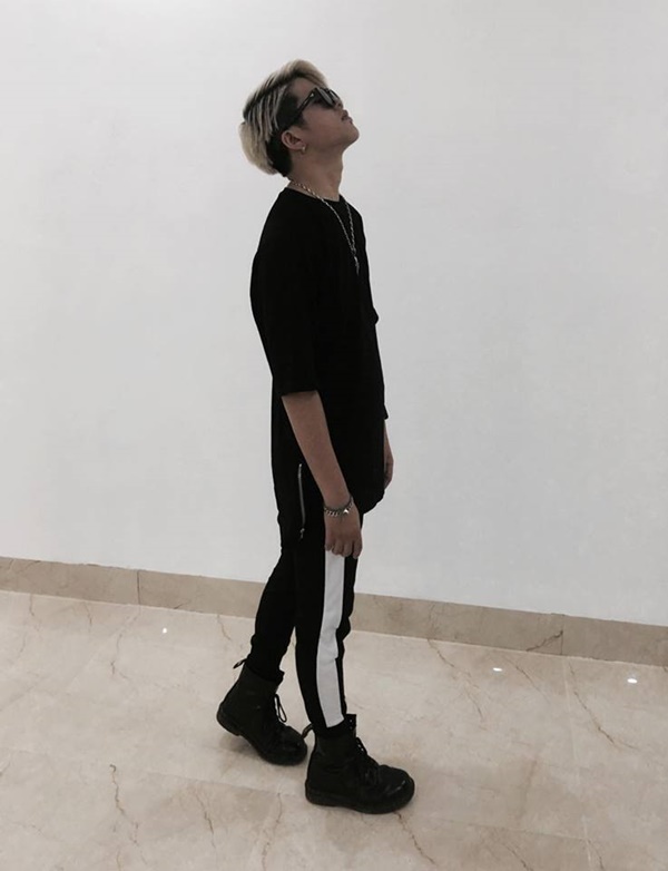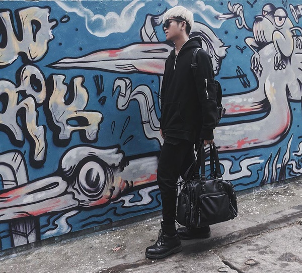 Chỉ với một gam màu đen nhưng nhờ sự mix&match từ những items khác nhau đã mang lại hình ảnh một Quang Anh vô cùng độc đáo.