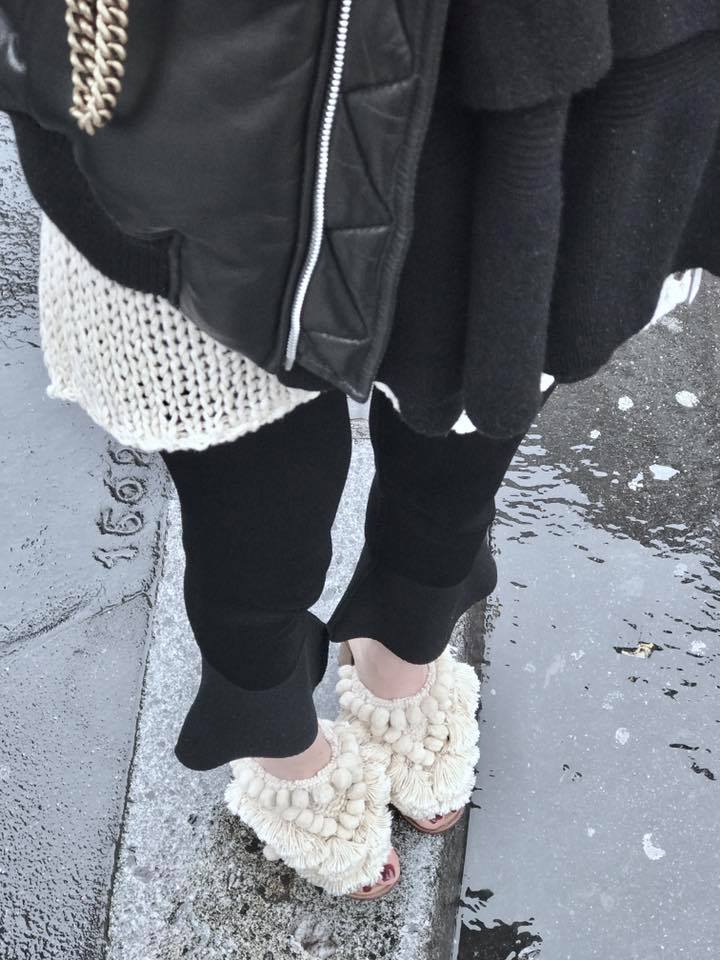 Cận cảnh đôi dép với những búi lông trắng khá ấn tượng.