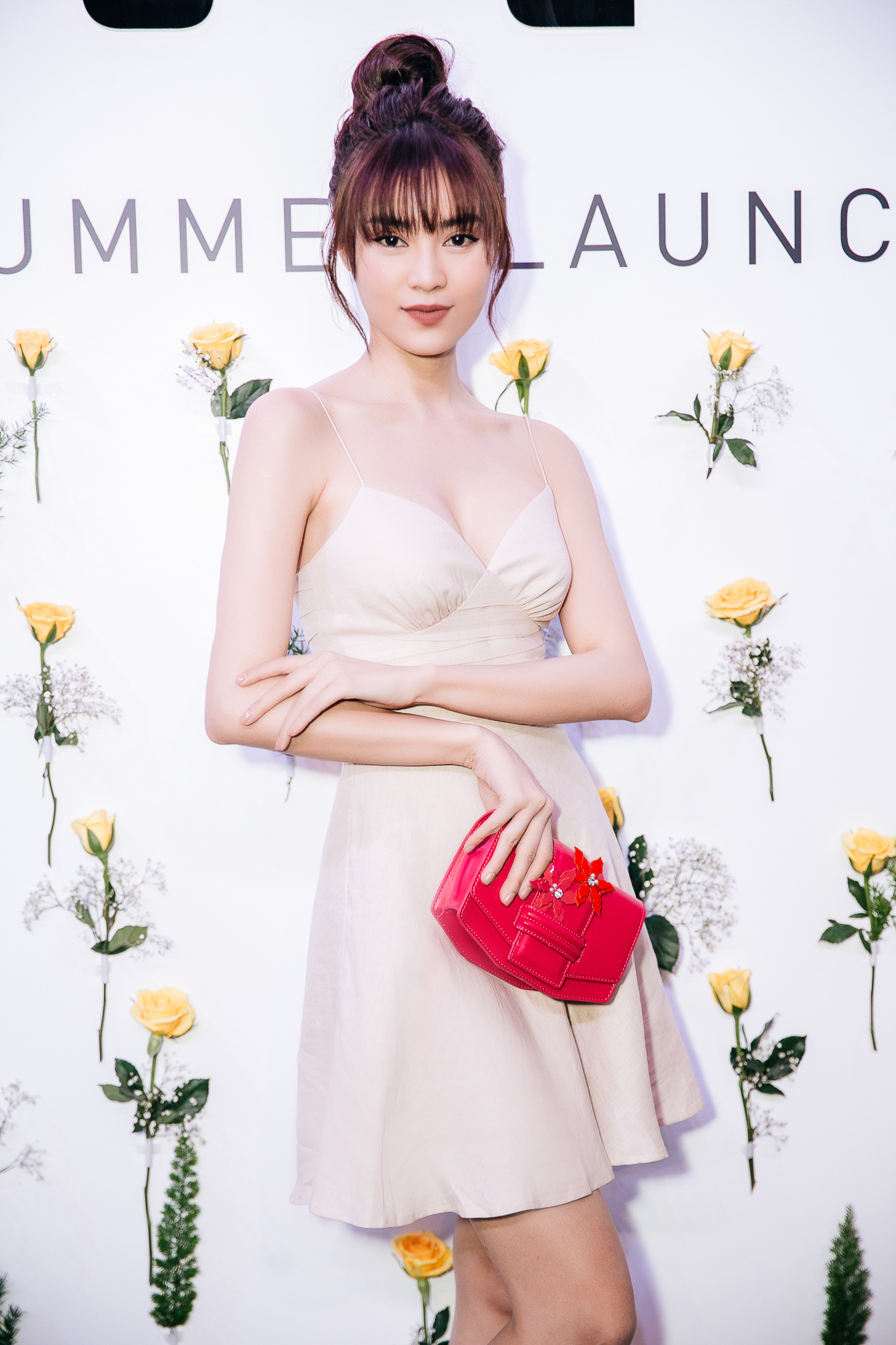 Ninh Dương Lan Ngọc khoe đầy gợi cảm với thiết kế hai dây dáng xoè thời thượng, được lấy cảm hứng từ đầm ngủ khoe vẻ đẹp mong manh, nữ tính. Sắc màu của váy tôn lên làn da trắng “không tì vết” của nữ diễn viên.