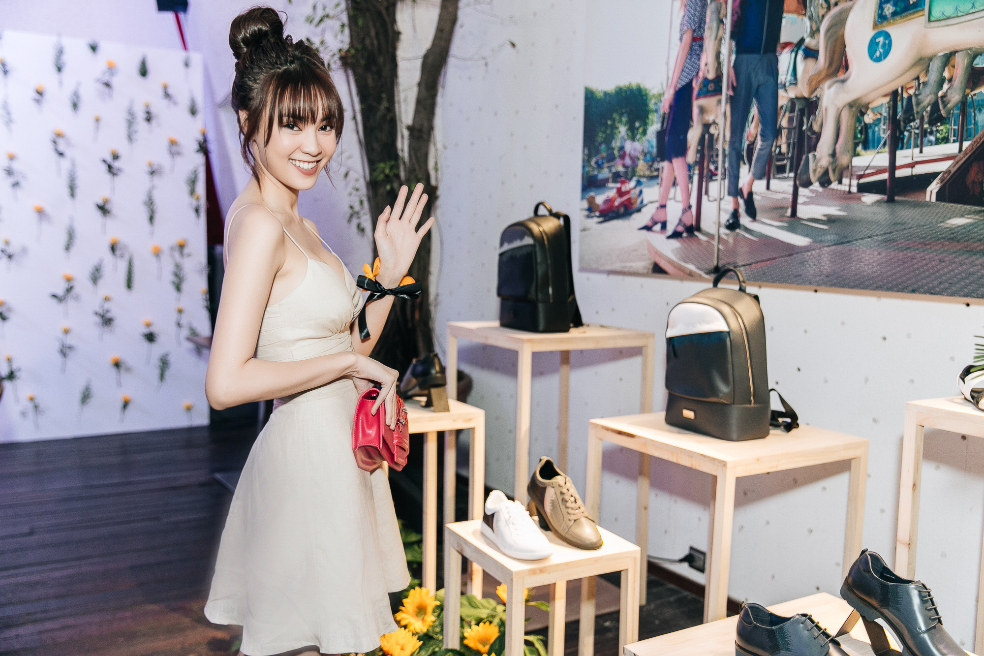Kiểu tóc mái thưa càng giúp nàng “Cám” trông trẻ trung. Lan Ngọc có sự kết hợp khá thú vị với sắc son lì ấn tượng. Bên cạnh đó, điểm nhấn đắt giá của bộ trang phục chính là chiếc clutch cầm tay màu đỏ đầy nổi bật.