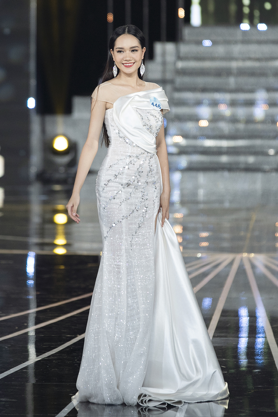 Trong phần thi trang phục dạ hội, các người đẹp đã khiến công chúng thích thú khi khoe được hình thể cùng những bước chân chuyên nghiệp, thần thái trong loạt váy áo lộng lẫy.