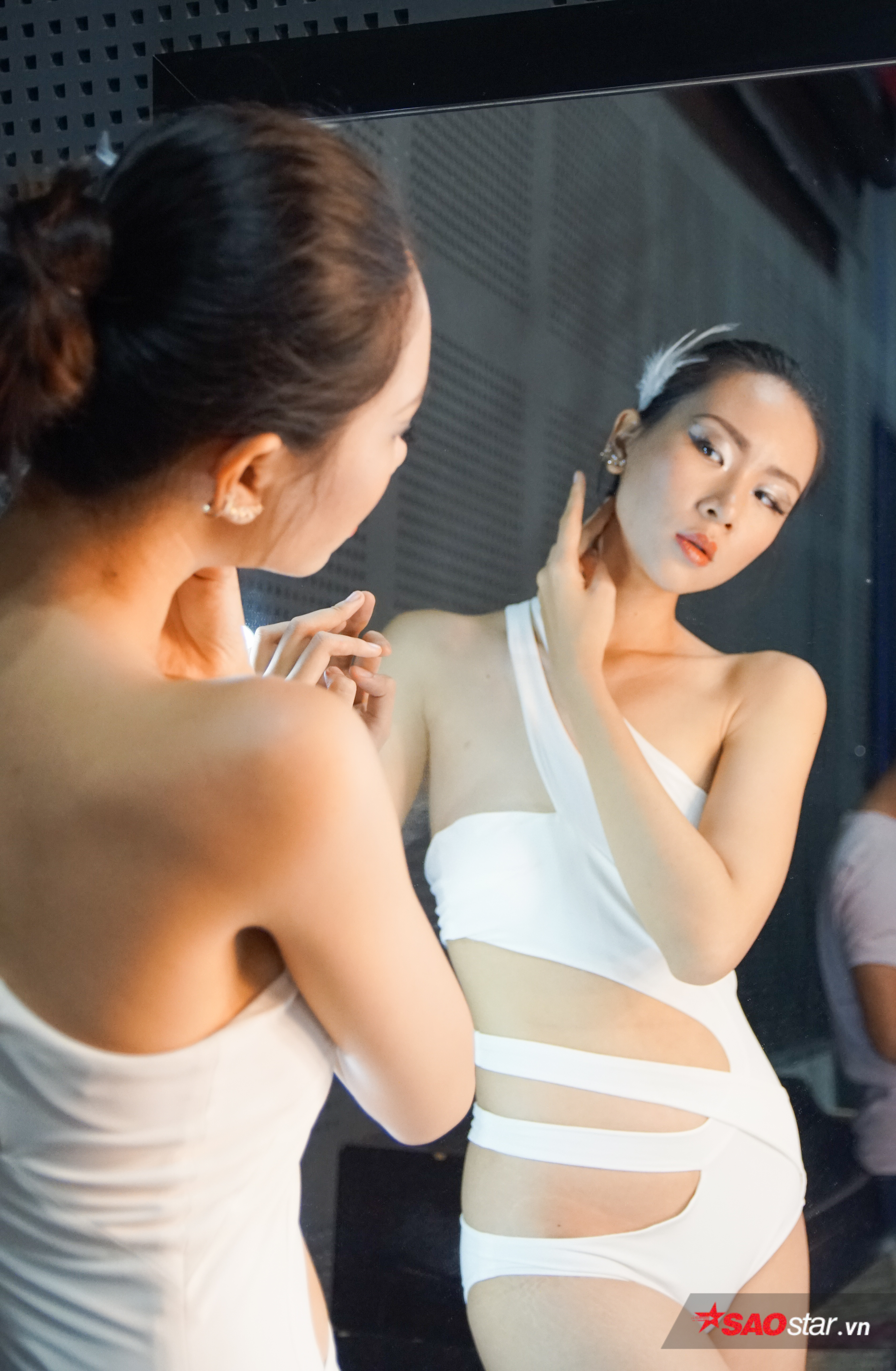 Trong hậu trường buổi shooting chụp concept lụa vừa qua, trong lúc đợi đến lượt chụp, các thí sinh đã có những giây phút xuất thần.