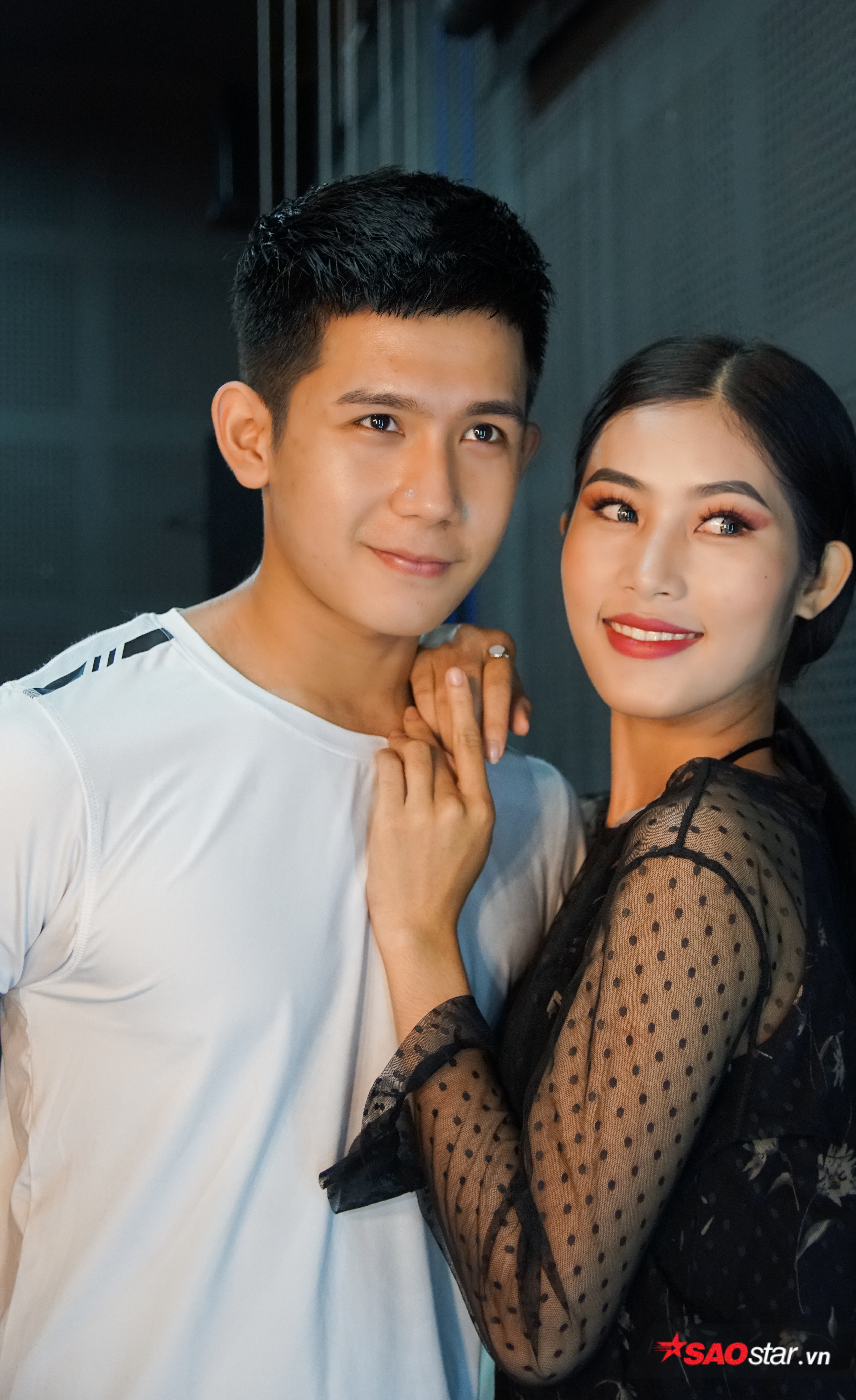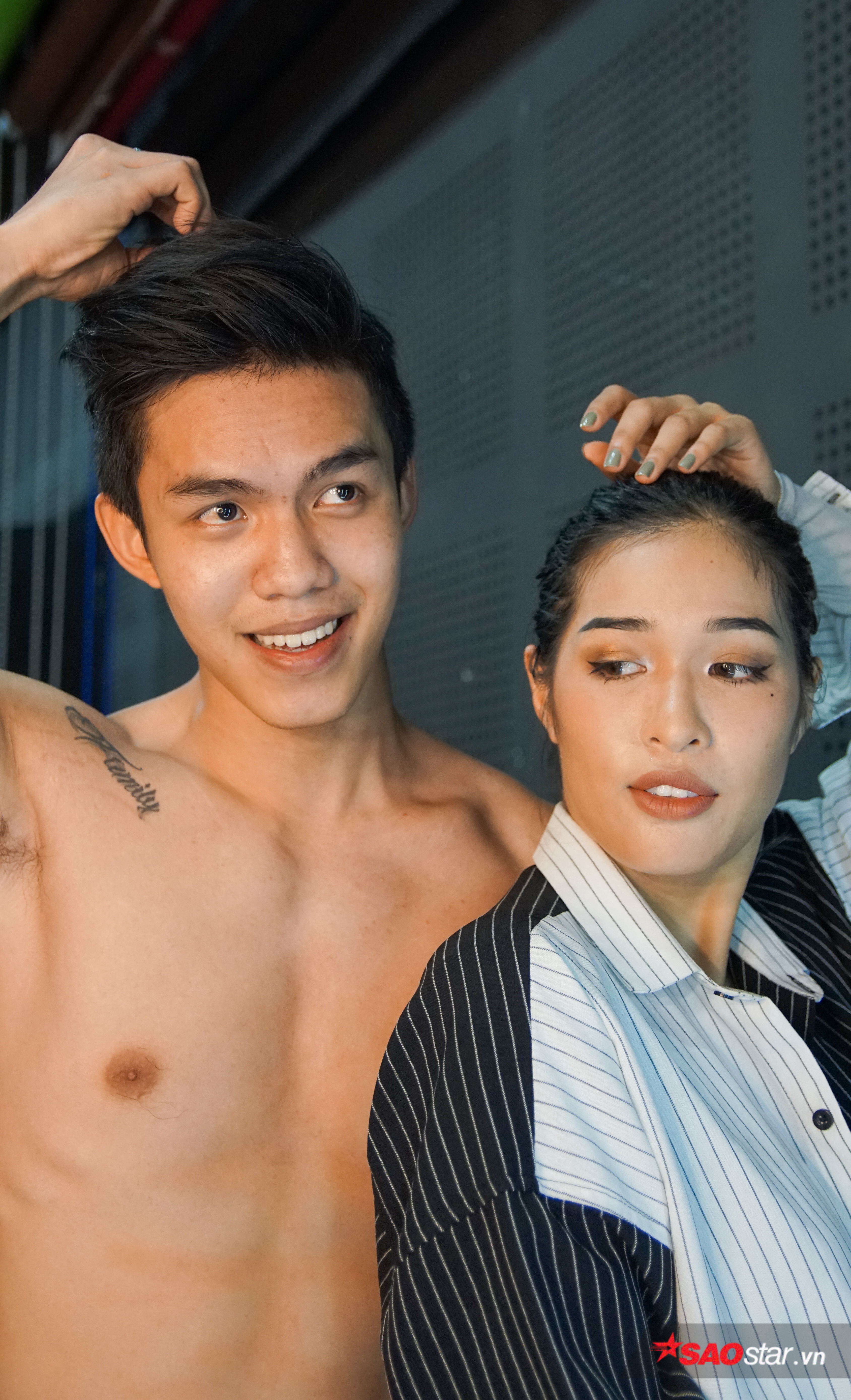 Xuân Hùng - Lan Anh vui vẻ tạo dáng trong hậu trường buổi shooting.