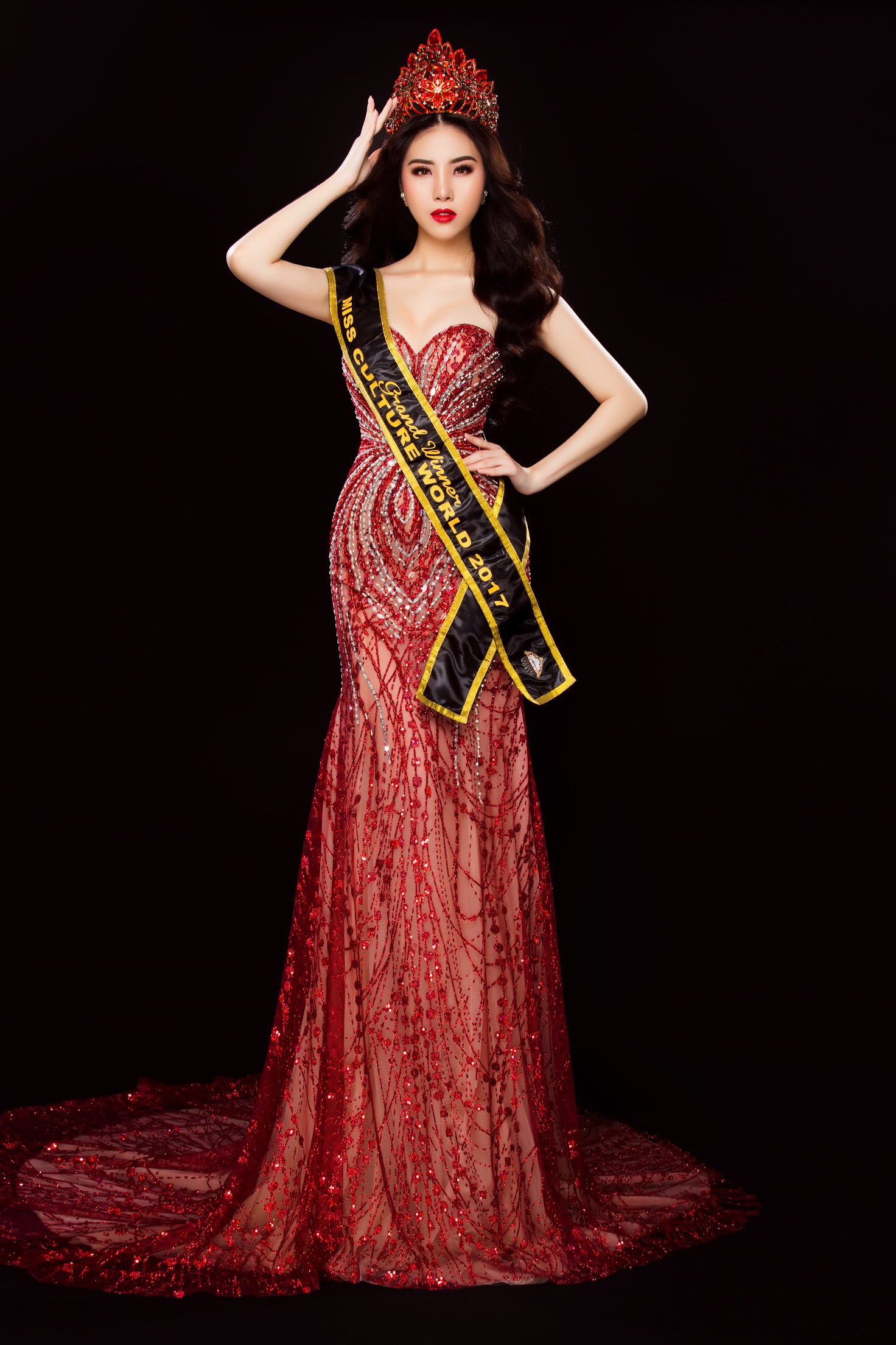 Cuối cùng cô gái trẻ đã chứng minh đam mê bằng sắc vóc hoàn hảo và năng lực của bản thân với vương miệng Hoa hậu Văn hóa Thế giới 2017.