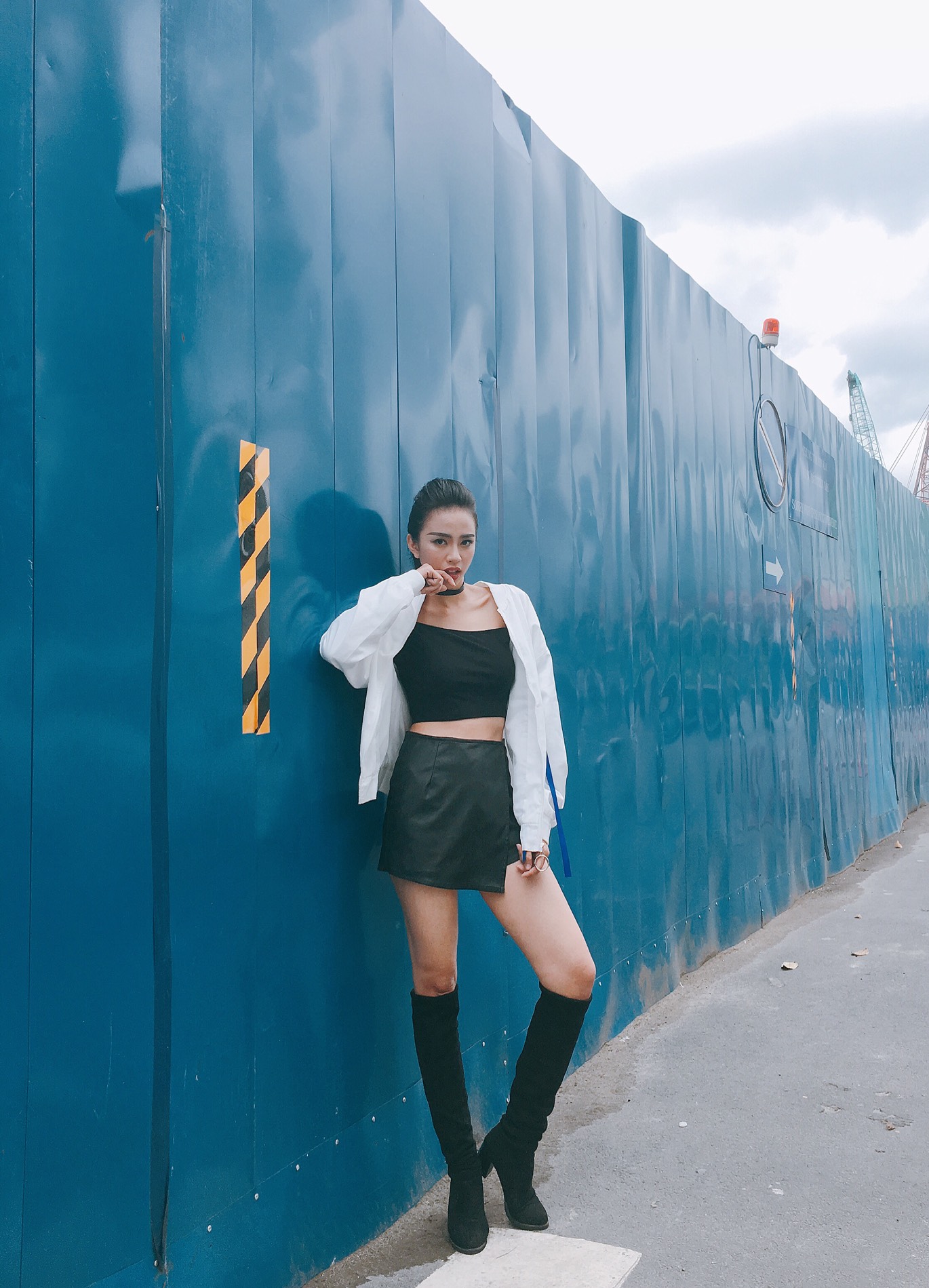 Và đôi boots da cao tới đầu gối là phần cuối cùng tạo nên một tổng thể hoàn hảo. Chẳng cần khoa trương đồ hiệu hay diêm dúa họa tiết, cứ đơn giản mà hiệu quả như Thiên Nga là được đúng không nào?