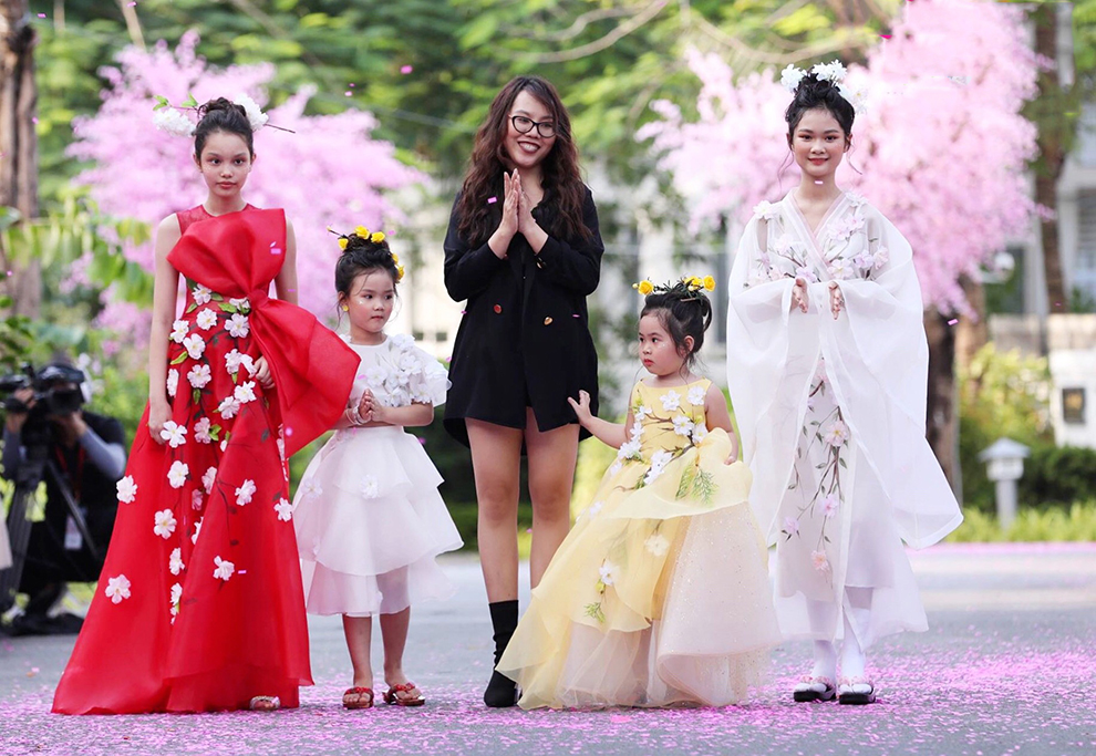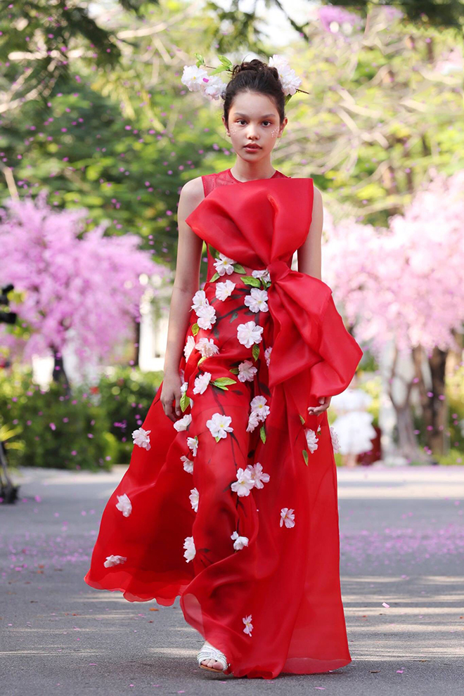 Quy tụ trong show diễn này còn có nhiều mẫu nhí có tên tuổi như mẫu nhí lai Tây Alex, mẫu nhí Tuệ Lâm, Hà Vy… Các người mẫu nhỏ xinh trình diễn bst của NTK Thảo Nguyễn. BST lấy ý tưởng từ sakura với tinh thần từ những loài hoa anh đào của Nhật Bản, những em bé được hoá thân thành nàng công chúa mộng mơ như lạc bước vào một khu vườn cổ tích có hoa và nhuộm màu nắng vàng.