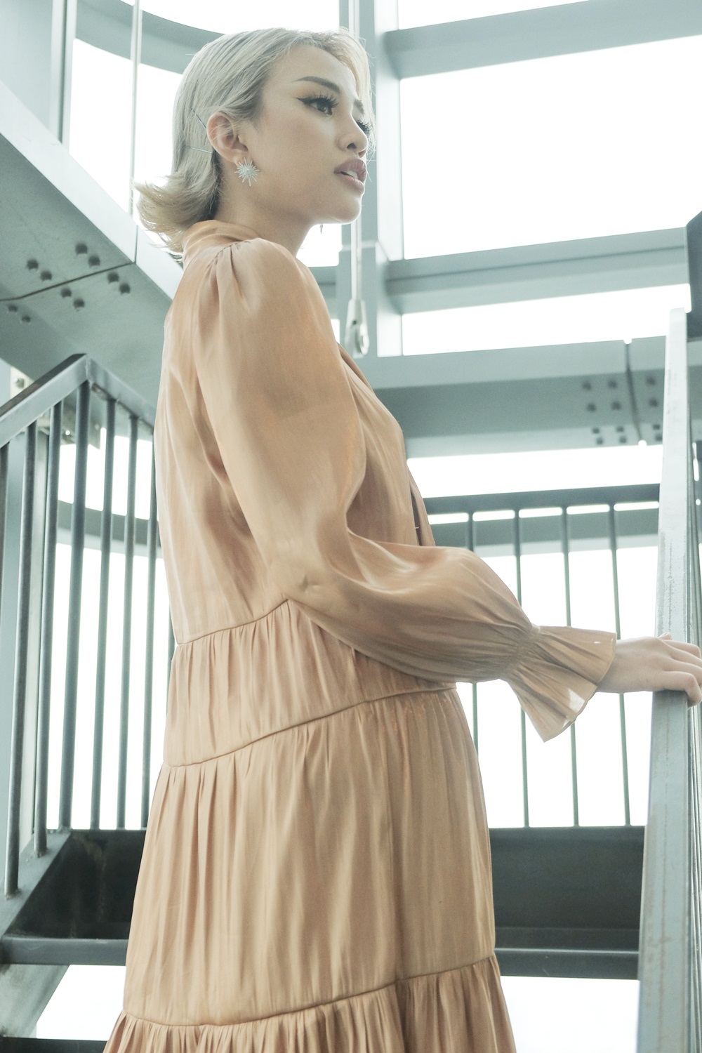 Tưởng chừng màu tóc bạch kim dễ làm khó trong việc lên đồ và chỉ hợp với nét cá tính, “chất chơi” nhưng chỉ cần khéo léo, tinh tế một chút, Thiên Nga đã chứng mình gam màu này hoàn toàn có thể hoàn hảo khi kết đôi với những thiết kế đơn giản.