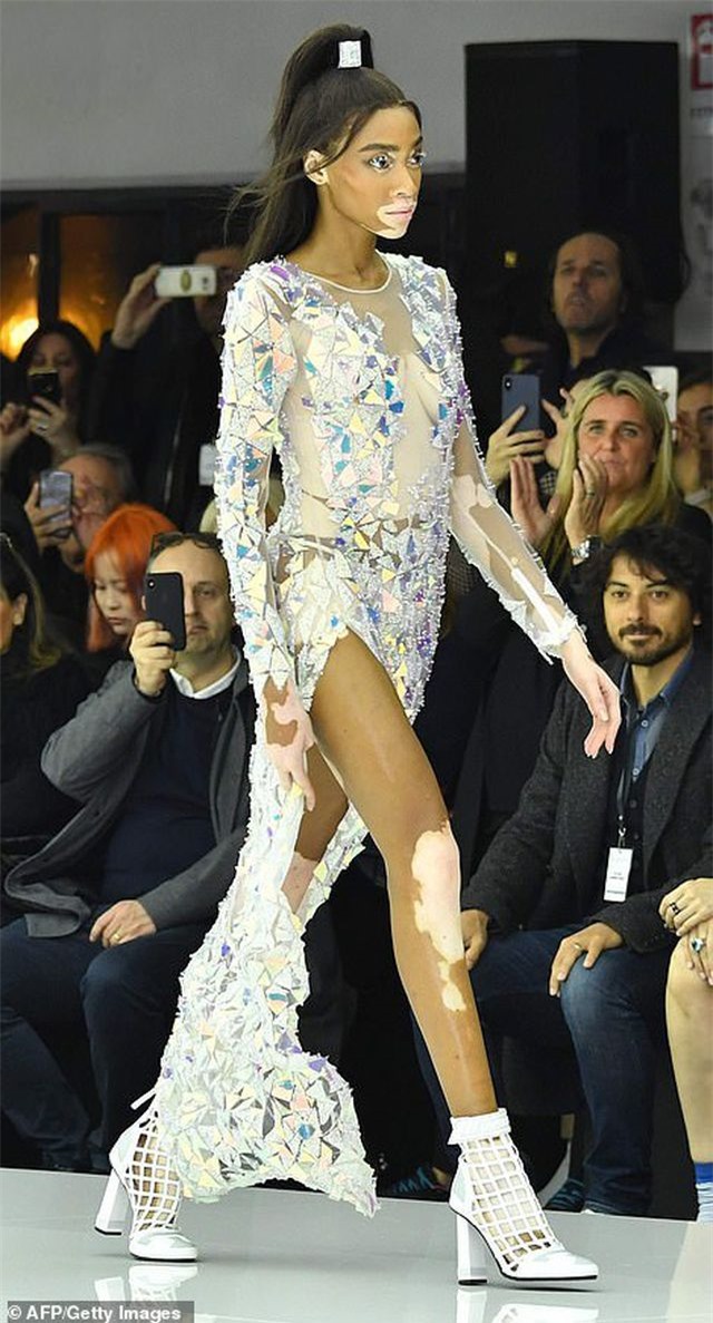 Người mẫu bạch biến Winnie Harlow nổi bật trong váy xuyên thấu tại Milan Fashion Week