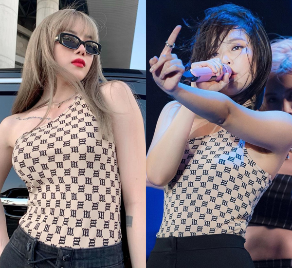 Mới đây, “bạn gái tin đồn” của Sơn Tùng đụng độ Jennie bodysuit họa tiết của thương hiệu MISBHV. Bộ swimsuit giá 360 USD (gần 8,4 triệu đồng) được Thiều Bảo Trâm diện từ giữa tháng 7, trong khi đó Jennie mới khoe dáng với item này vào ngày 7/9 tại sự kiện Japan Wired Music Festival.