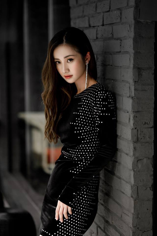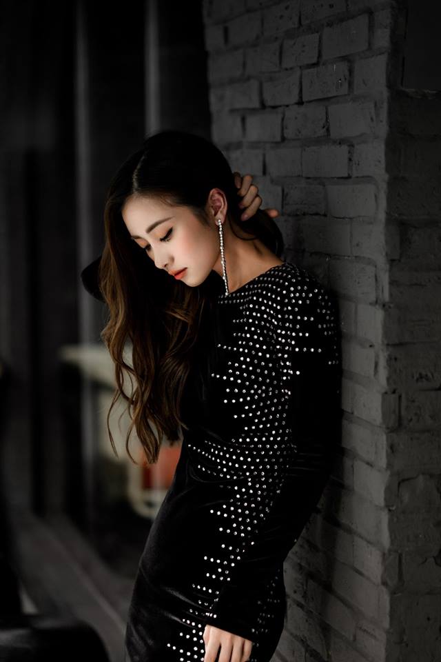 Cô nàng khoe vóc dáng chuẩn cùng đôi chân thẳng tắp trong chiếc váy ngắn chất liệu nhung. Thông thường, loại vải này dễ khiến người mặc bị “cộng thêm tuổi”, nhưng Bảo Trâmđã khắc phục điều đó khi phối cùng bao tay da đen bóng và boots cổ cao.