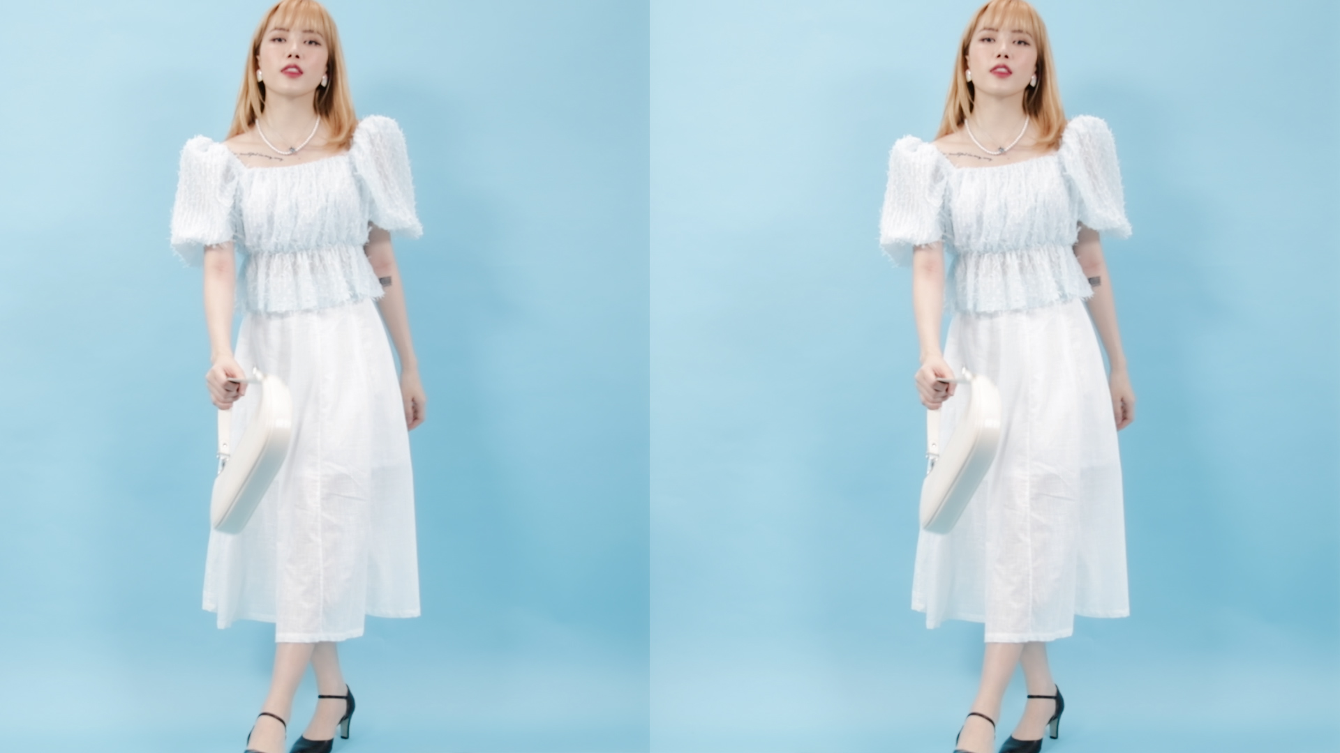 Bộ cánh thứ 2 lại hướng đến nét cá tính pha chút thời thượng gồm áo phông cắm thùng với quần cạp cao, áo khoác lửng làm điểm nhấn kèm phụ kiện vòng cổ. Với những cô nàng “bánh bèo”, muốn diện váy dài ngày đầu năm nhưng có thêm tí phá cách, đừng bỏ qua set đồ theo style white on white với váy dài và áo tay bồng, chắc chắn sẽ khiến nàng trở thành tâm điểm trong mắt người xung quanh.