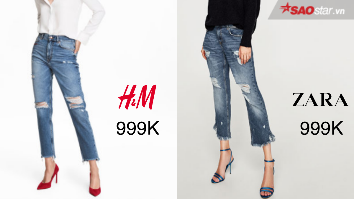 Thứ gì có thể lỗi mốt chứ quần jeans rách gối thì không, đây chắc chắn là điều mà không ai có thể phủ nhận. Phom dáng tinh tế và đậm chất thời trang với phần ống quần hơi loe này dễ dàng tìm thấy ở cả hai thương hiệu lớn. Để sở hữu item jeans chất lừ, số tiền bạn phải bỏ ra đồng giá 999.000VNĐ. Và ở hạng mục này, ứng cử viên sáng giá nhất thuộc về Zara với phần wax màu đậm nhạt tạo nét cá tính hơn.