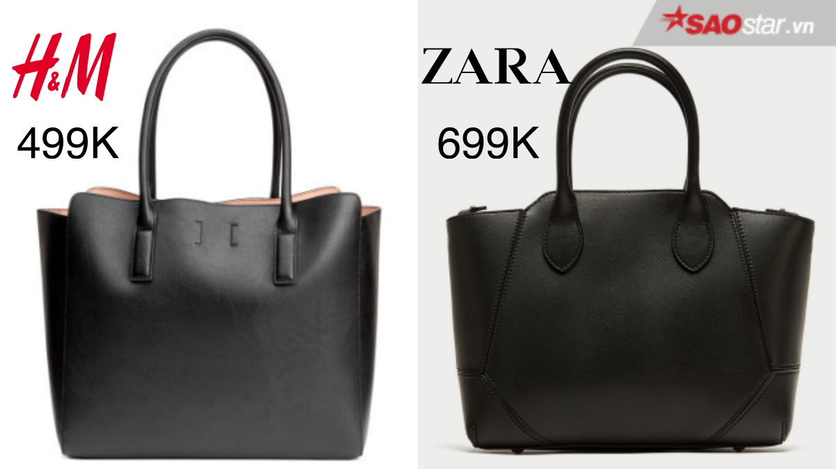 Tiện dụng, trendy và dễ dàng kết hợp cùng nhiều kiểu quần áo khác nhau là lý do kiểu túi xách này được ưa chuộng hơn cả. Nhìn lướt qua, hai thiết kế này đều có chất liệu, kiểu dáng na ná nhau. Thế nhưng, mẫu túi của Zara dường như có phần chỉnh chu và tỉ mỉ hơn, vì vậy mà nó có giá cao hơn 200 nghìn đồng so với mẫu H&M.