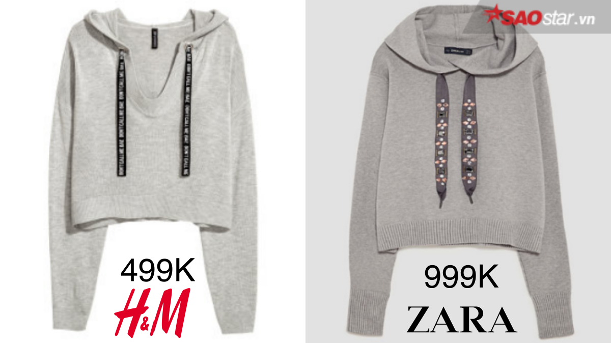 Sắc xám ghi nhẹ nhàng, thanh lịch là lựa chọn hoàn hảo cho những cô nàng yêu thích sự trẻ trung, năng động và một chút cá tính. Đến với hai items “đắt giá” có vẻ ngoài hao hao nhau này, khó có thể nói ai nhỉnh hơn ai. Nếu phần cổ khoét sâu giúp H&M ghi điểm tuyệt đối thì dải dây buộc bắt mắt của Zara khiến không ít các tín đồ thời trang “rung rinh”. Không nằm ngoài tầm dự đoán, hoodie nhà Zara chạm ngưỡng 999.000VNĐ và gấp đôi thiết kế H&M (499.000VNĐ)