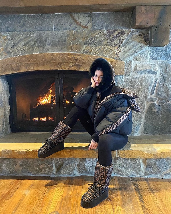 Thế nhưng có vẻ chịu lạnh không bao lâu thì vào đến bên trong nhà, Kylie đã “dát” đồ hiệu trang phục mùa Đông đến từ Fendi kín cổng cao tường như thế này đây