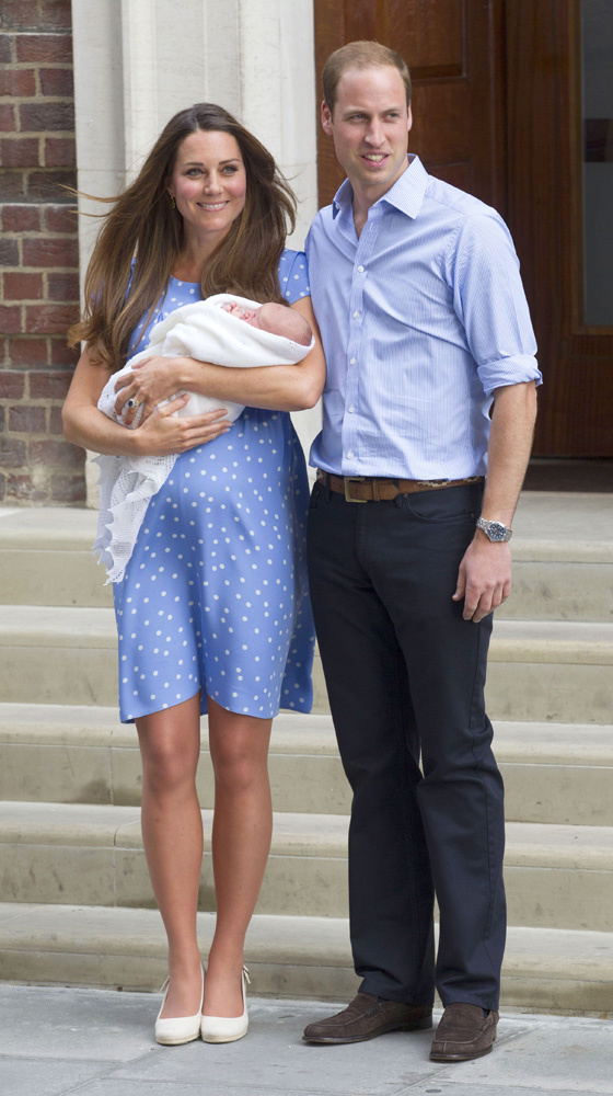 Khi chào mừng Hoàng tử Geogre ra đời vào tháng 7/2013, cả đôi vợ chồng Hoàng Gia đã cùng nhau diện chung kiểu tông màu xanh pastel nhẹ nhàng. Nếu Kate chọn kiểu đầm nữ tính chấm bi thì anh chồng cũng khoác trên mình kiểu áo sơ mi hợp tông với vợ.