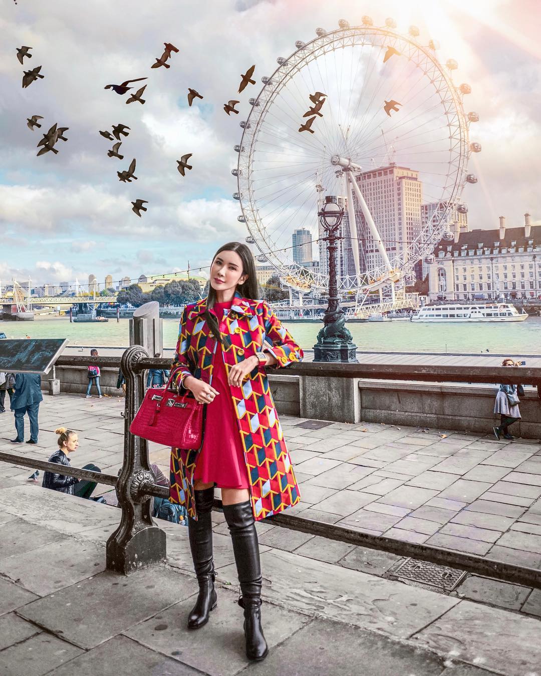 Không chỉ sành điệu hàng hiệu mà Jamie Chua còn rất khéo léo trong khoản mix đồ. Trong hình dù là gam màu trang phục và túi hồng pha đỏ khá chói nhưng cũng chả làm khó cô trong việc lên đồ sao cho đẹp nhất.
