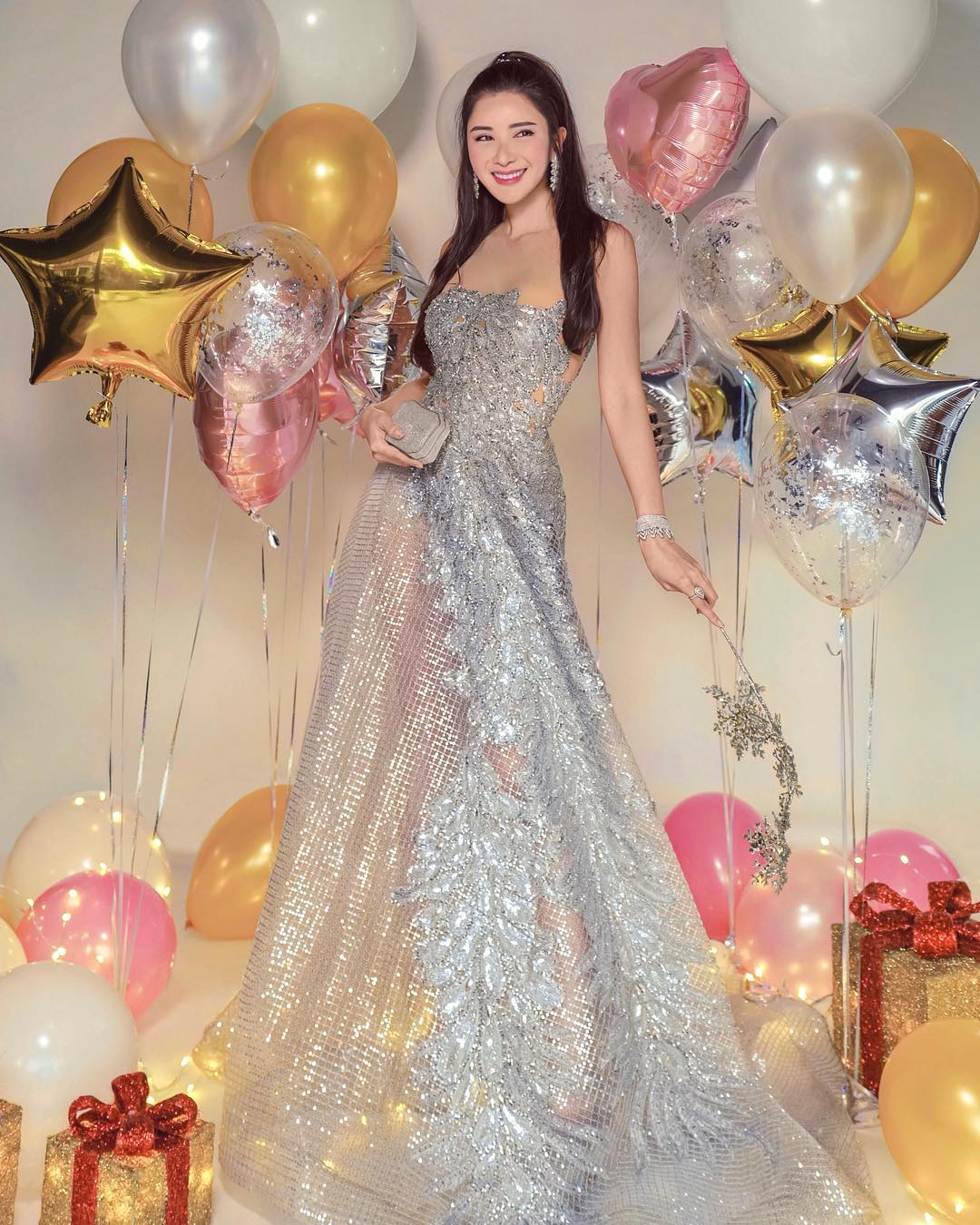 Đôi khi cô cũng thích phong cách công chúa với những chiếc váy ánh bạc lấp lánh xuyên thấu.