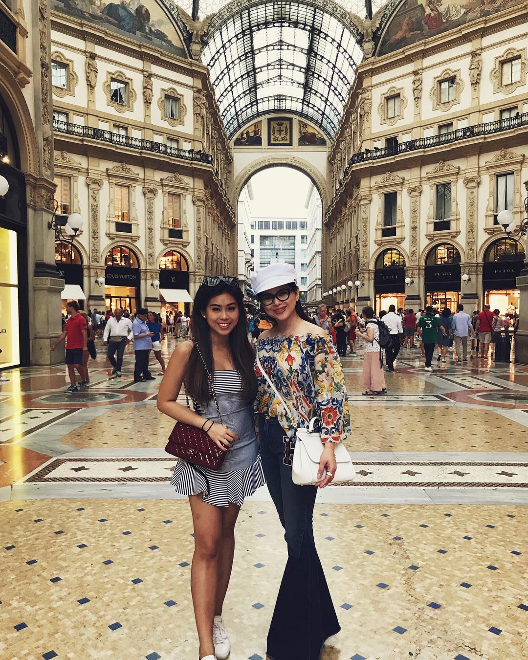 Hai mẹ con của gia tộc danh giá xuất hiện nổi bật, thời thượng giữa lòng Châu Âu với áo khoác lông thú đắt tiền.
