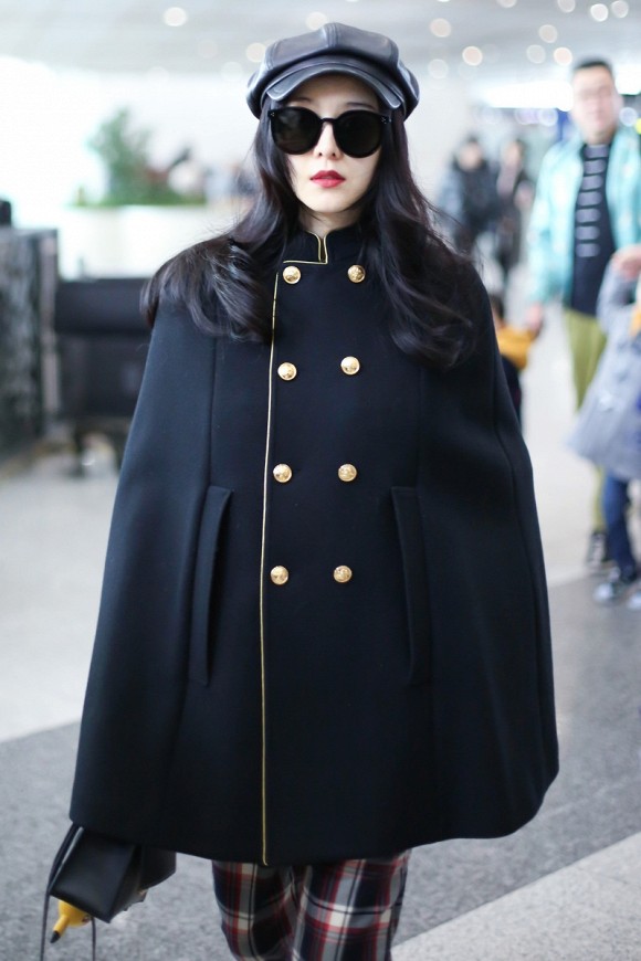 Phạm Băng Băng diện cây đồ ngủ ra sân bay không quên trùm cái áo khoác style cánh dơi như đang trùm mền