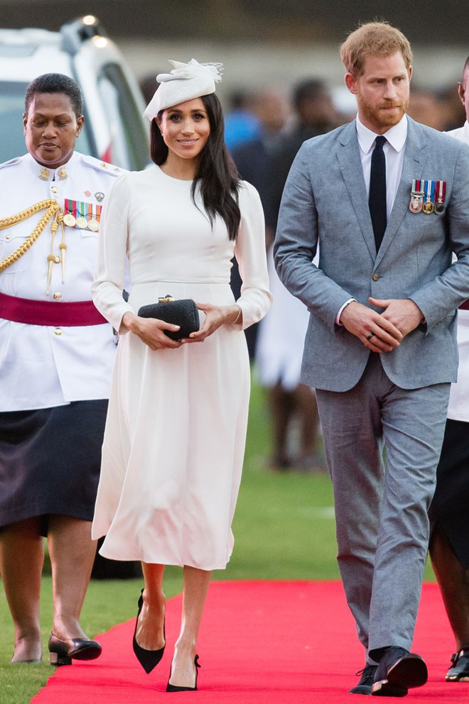 Meghan xinh đẹp trong chiếc váy Zimmermann màu kem kín đáo với điểm nhấn là phụ kiện mũ đội đầu