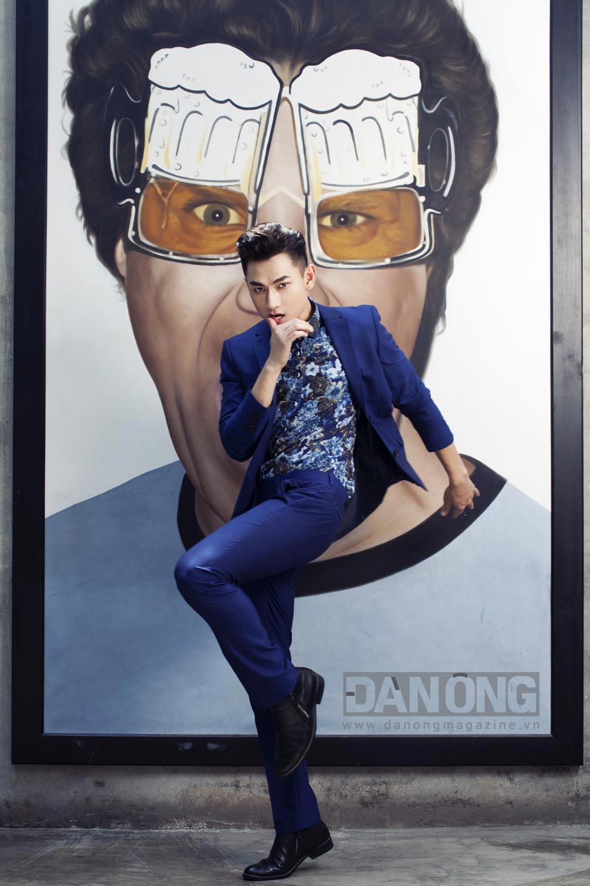 Với S.T, anh không bó buộc bản thân bằng cách diện vest truyền thống mà luôn tìm tòi nhữngng cái mới, trải nghiệm nó một cách thích thú và biến nó trở thành dấu ấn cá nhân. Với bộ vest xanh coban nổi bần bật, anh chọn kết hợp cùng áo thun họa tiết thêu hoa đỏ thắm.