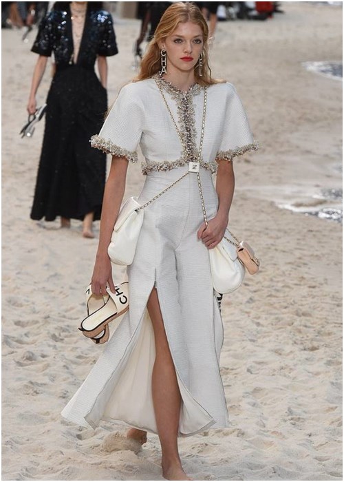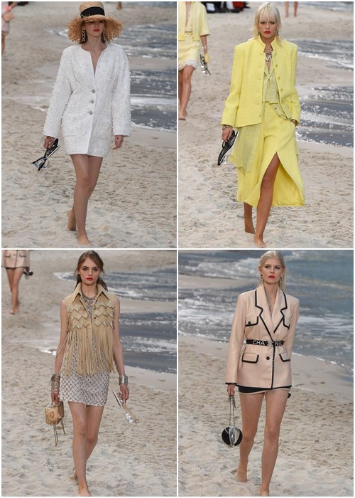 Bộ sưu tập mới #Chanelbythesea trong khuôn khổ Tuần lễ thời trang Paris lần này Chanel tiếp tục mang tới nhiều điều mới lạ. Khi sàn catwalk dựng ngay bên bãi biển. Người xem vừa được chiêm ngưỡng những mẫu áo, váy tuyệt tác trong chất liệu tweed trứ danh của Chanel, vừa được nghe sóng vỗ rì rào và nếm vị mằn mặn của gió biển.
