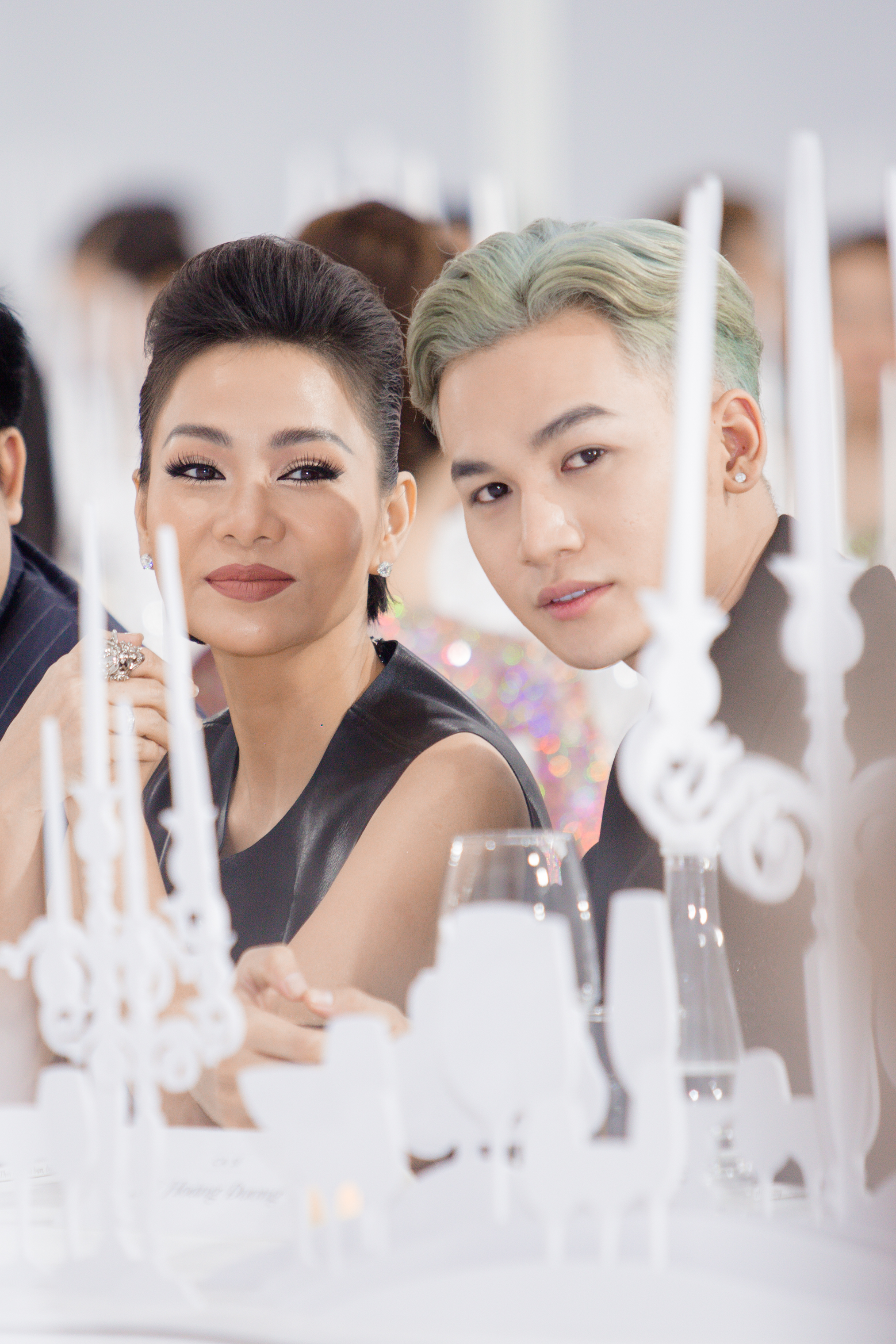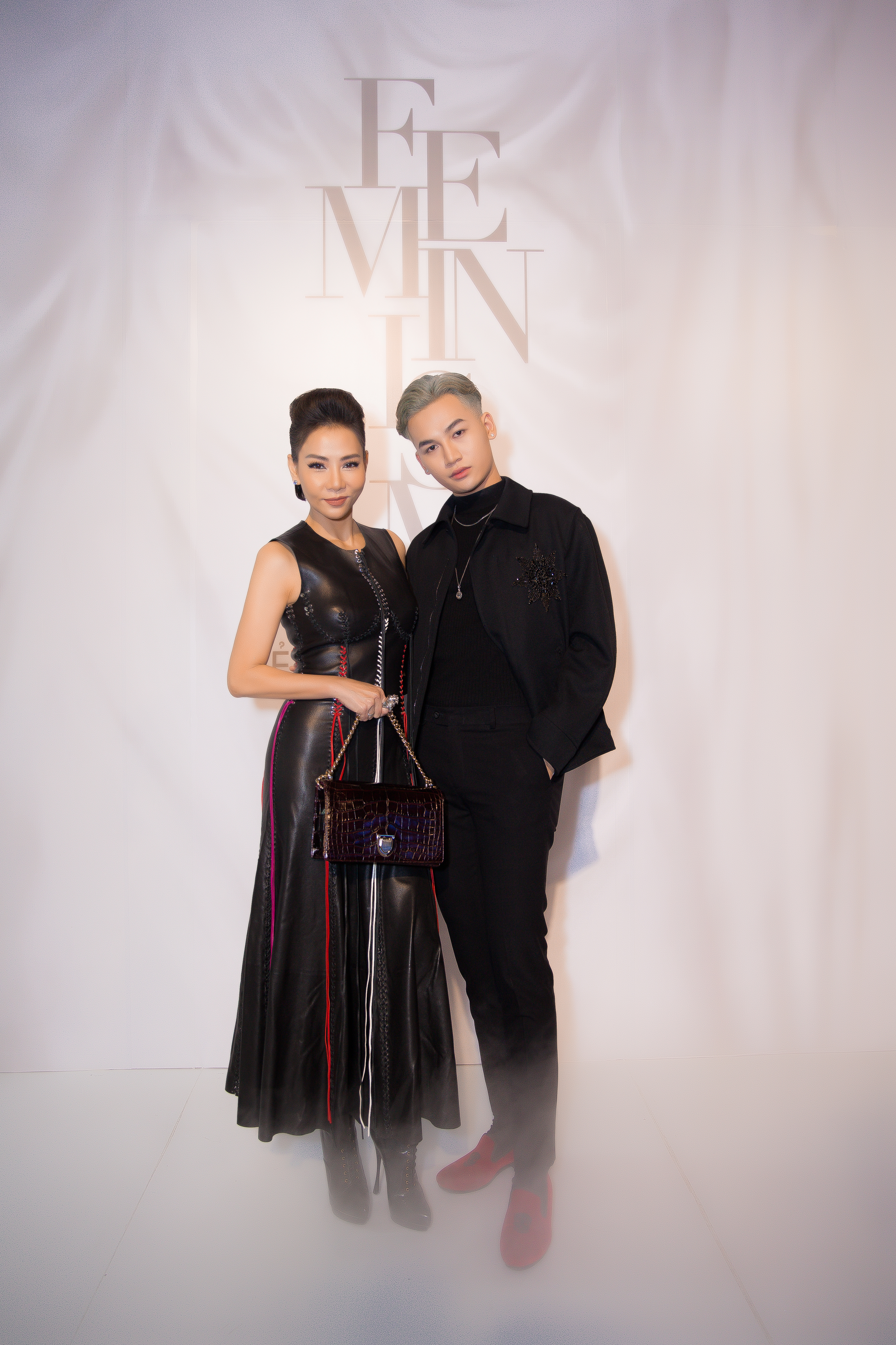 Tháp tùng giọng ca “Bay” đến tham dự sự kiện là học trò Ali Hoàng Dương, cả hai cùng diện trang phục tông đen ăn khớp.