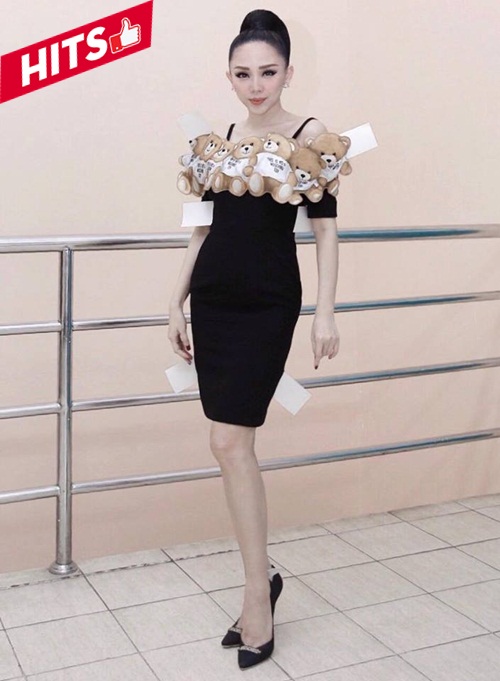 Tóc Tiên lựa chọn đầm bodycon thuộc thương hiệu Moschino với họa tiết hình gấu ngộ nghĩnh, đáng yêu khiến chiếc váy mang phom dáng thông thường bỗng trở nên ấn tượng và đẳng cấp hơn rất nhiều.