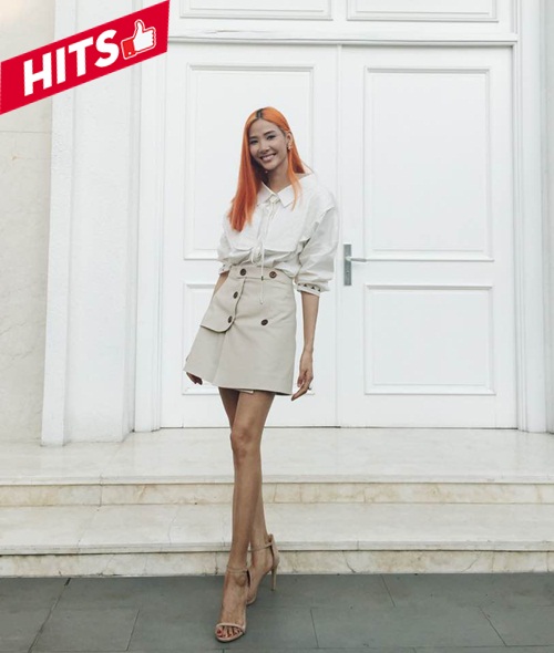Huấn luyện viên The Face Hoàng Thùy diện thiết kế mới nhất của nhà mốt trẻ Lâm Gia Khang, cô khoe chân dài nuột nà bằng những items đơn giản nhất.