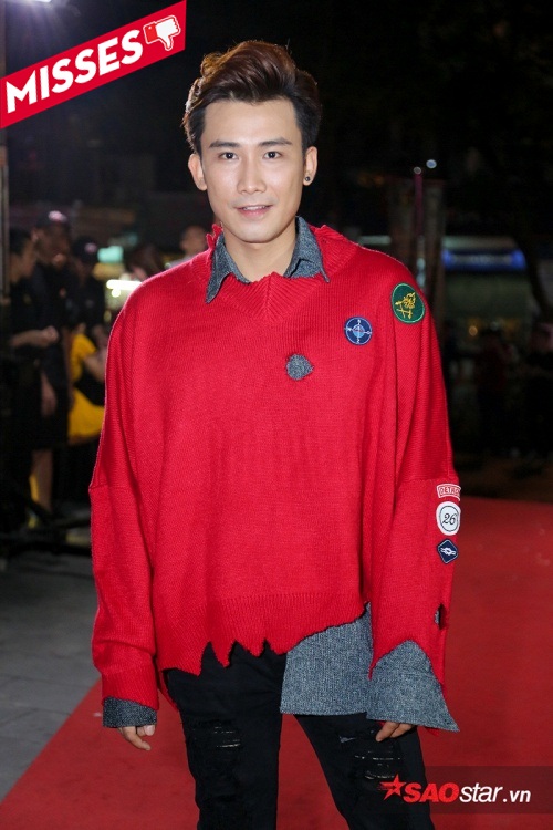 Chí Thiện không phù hợp thảm đỏ, trang phục nham nhở có lẽ chỉ dành cho bộ ảnh street style hay đi chơi với hội bạn thân. Anh chứng tỏ sự xuề xòa và không coi trọng hình ảnh của mình khi xuất hiện trước công chúng.
