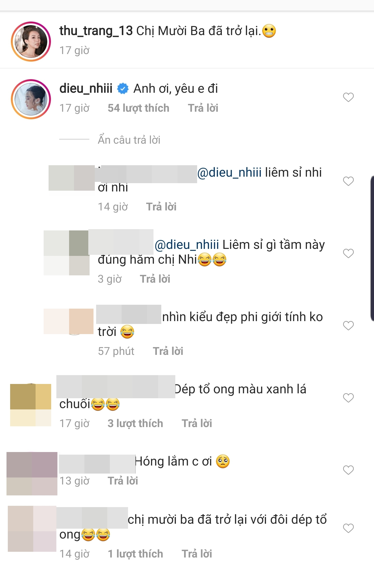 Ngay phía dưới, không ít lời khen có cánh của khán giả dành cho cô nàng. Thậm chí, Diệu Nhi cũng vào “tỏ tình” đến “rơi cả liêm sỉ”, nữ diễn viên hài hước: “Anh ơi, yêu em đi”.