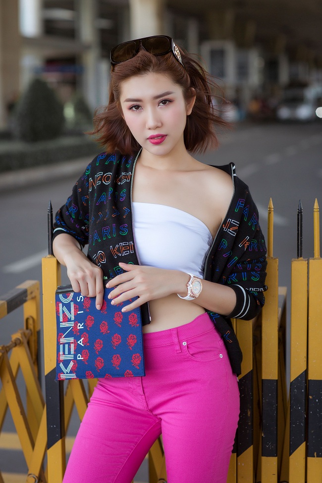 Nàng “Hân hoa hậu” còn bổ sung loạt phụ kiện hàng hiệu gồm mắt kính, đồng hồ, túi xách.