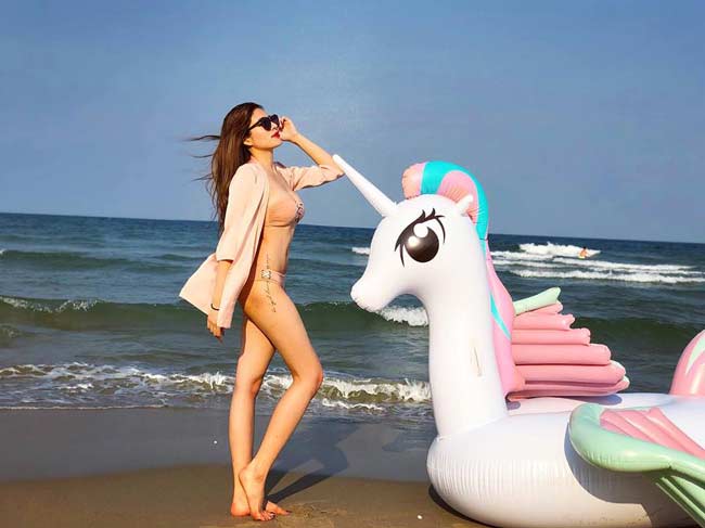 Rất hiếm khi khoe ảnh diện áo tắm nhưng mỗi lần trình làng, “Hân hoa hậu” đều khiến mọi người ghen tỵ về thân hình đạt chuẩn của mình.