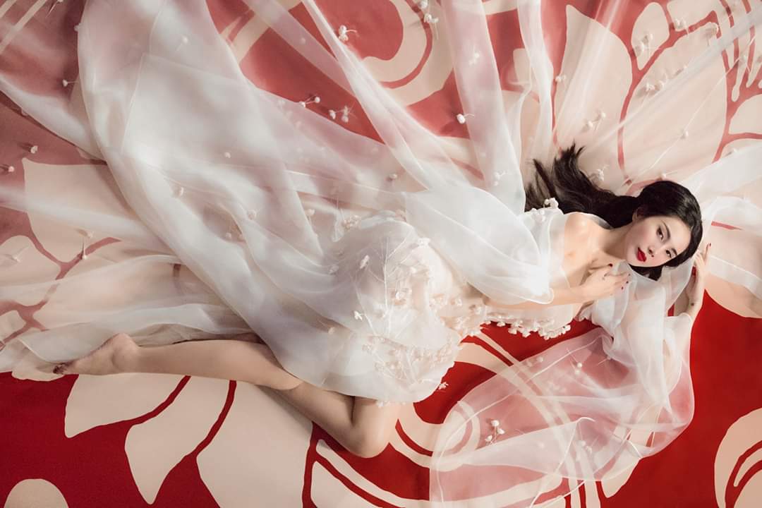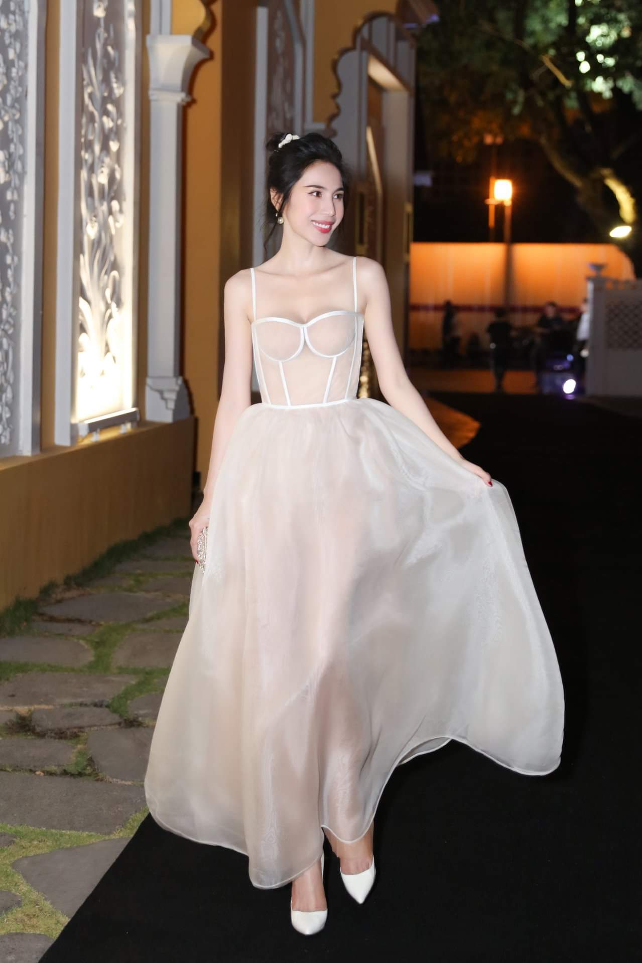 Theo đó, trang phục voan, organza có tính chất trong suốt, bay bổng luôn là sự lựa chọn của cô.