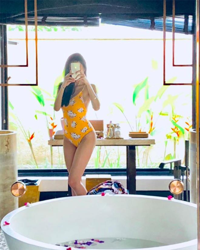 Đây không phải là lần đầu tiên nữ ca sĩ “gây choáng” khi thả dáng cùng áo tắm một mảnh, có thể thấy với vóc dáng mảnh mai, dù sau sinh con, Thủy Tiên vẫn duy trì được hình ảnh quyến rũ, gọn gàng, đúng với câu “gái một con trông mòn con mắt”.
