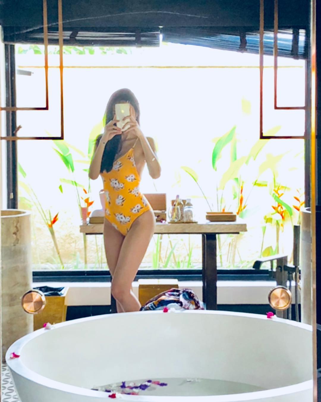 Thủy Tiên khoe ba vòng nóng bỏng trong mẫu áo tắm gam màu vàng xu hướng. Tuy đã bước sang ngưỡng tuổi trên 30 nhưng sắc vóc của bà xã Công Vinh vẫn vô cùng gợi cảm, đủ sức khiến cánh mày râu xuýt xoa trong khi giới phụ nữ lại thầm ghen tỵ.
