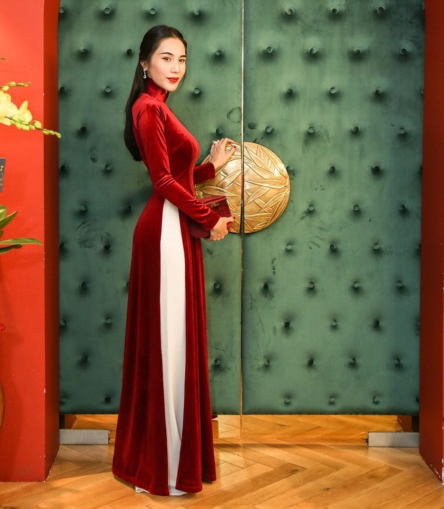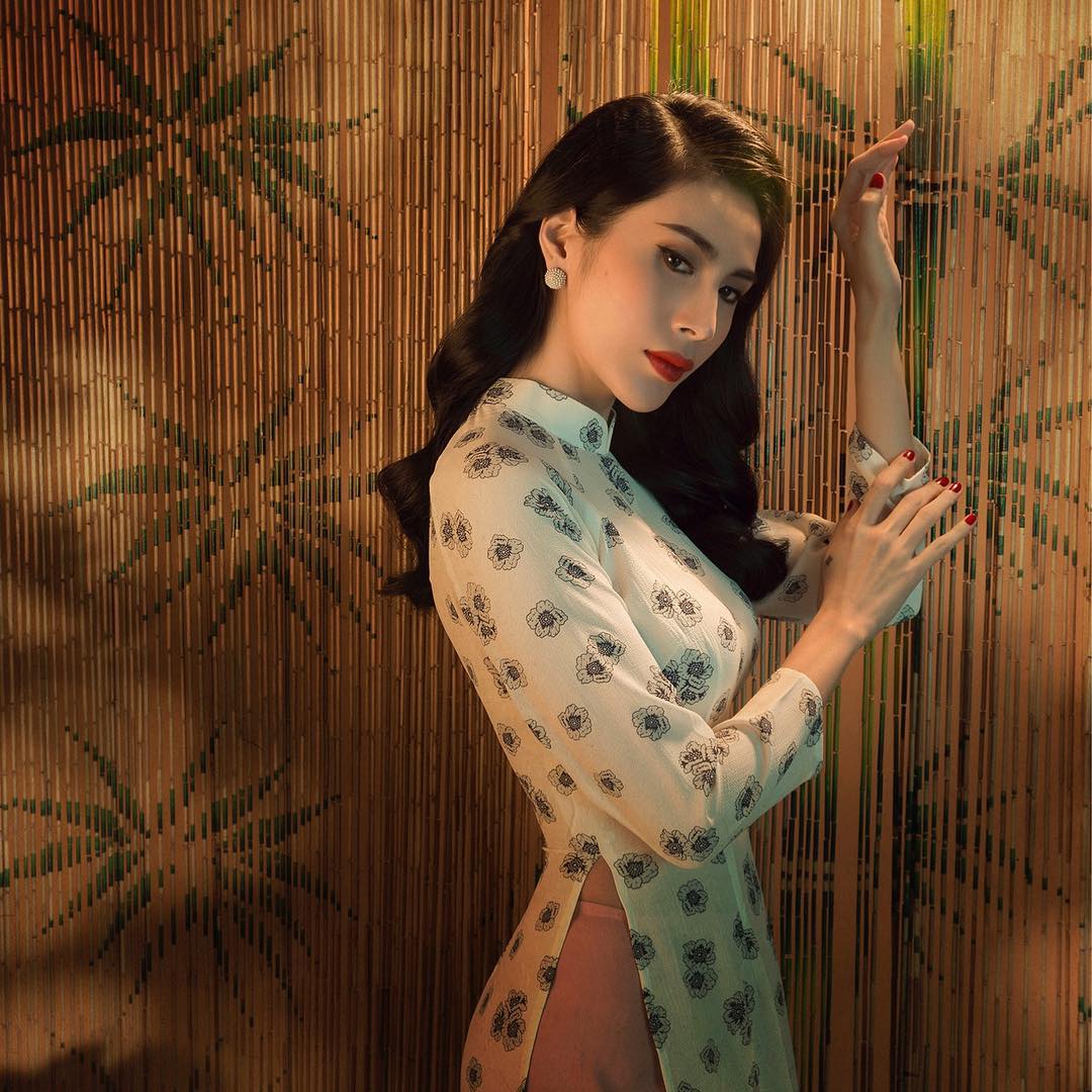 Bên cạnh đó Thủy Tiên diện áo dài cũng rất hợp.