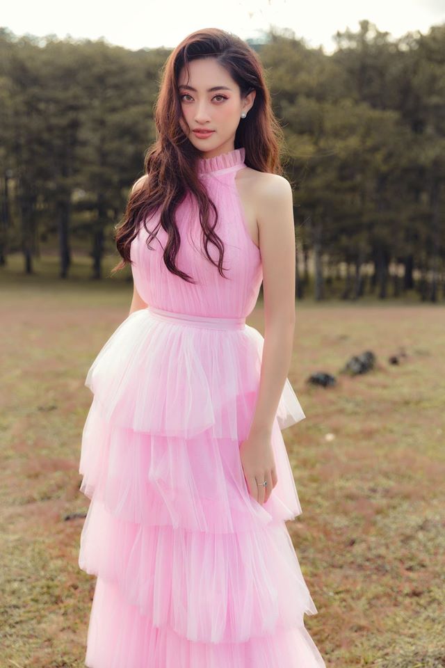 Nếu Thúy Vân được ví như tiên nữ thì đổi lại Lương Thùy Linh chẳng khác nào nàng công chúa mong manh, nhẹ nhàng trong bộ dạ hội xếp tầng bồng bềnh khiến ai ngắm nhìn cũng phải ngẫn ngơ.