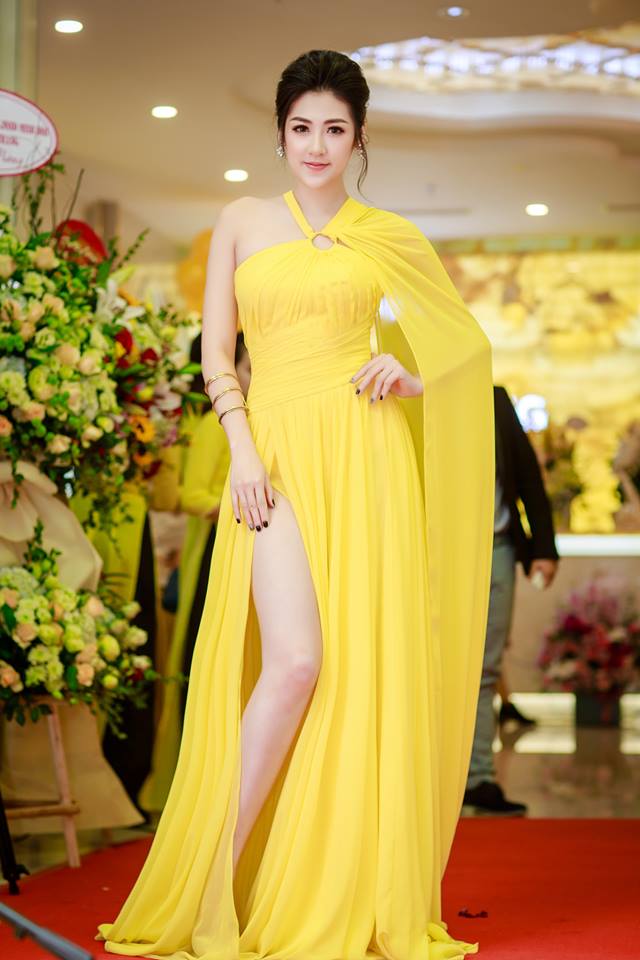 Cô trở thành khách mời đặc biệt của sự kiện “Diễn đàn nữ lãnh đạo quốc tế 2018”. Ngay lập tức người đẹp gây ấn tượng với bộ đầm tông vàng có đường cắt xẻ tinh tế, quyến rũ. Đây là thiết kế từng được Hoa hậu Hoàn vũ Phạm Hương và á hậu Tú Anh diện trước đó không bao lâu.