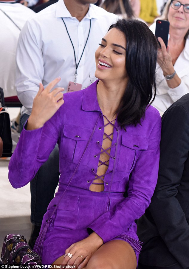 Kendall Jenner nổi bật với chiếc đầm màu tím có thiết kế đan dây ở trước ngực.