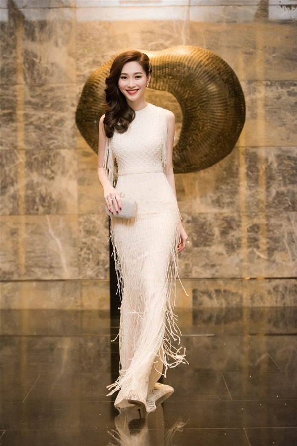 Hoặc đầm xẻ tà khoe chân dài miên man. Hiểu rõ lợi thế hình ảnh của mình, gam màu trắng luôn được hoa hậu ưu tiên mặc trong các sự kiện giải trí. Liệu trong hôn lễ sắp tới, cô có chọn màu yêu thích làm gam chủ đạo cho lễ cưới và trang phục cô dâu, chú rể hay không?