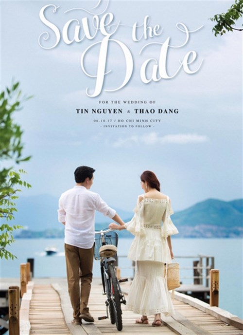 Bìa thiệp cưới của hoa hậu và doanh nhân Trung Tín.