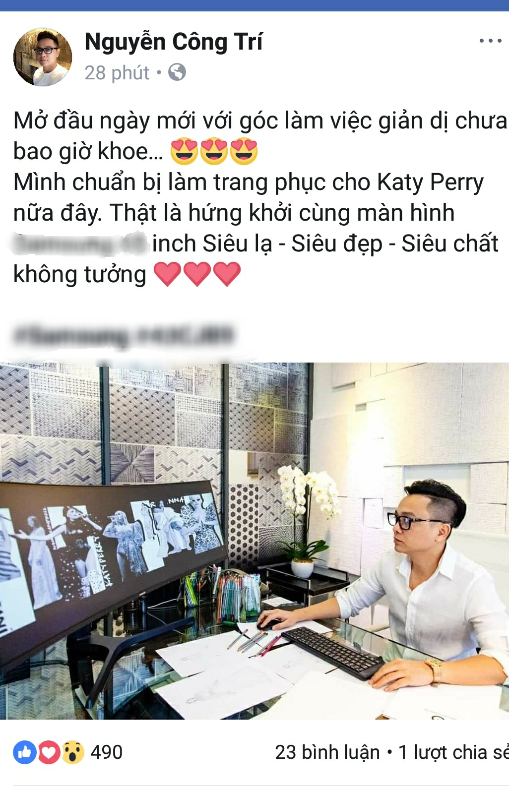 Mới đây, “anh cả làng thời trang” lại tiếp tục khiến giới mộ điệu mừng vui khi thông báo lên trang cá nhân việc anh tiếp tục được nữ ca sĩ nổi tiếng quốc tế Katy Perry tin tưởng và đặt hàng trang phục.