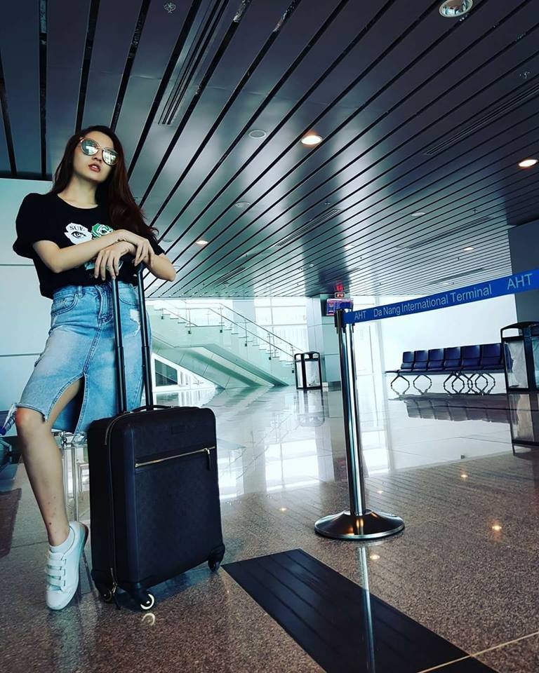 Với thời trang sân bay năng động, tiện lợi, Bảo Anh cũng không quên sử dụng chiếc monokini yêu quý của mình.