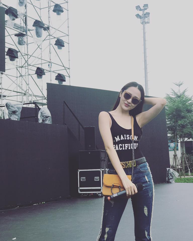 Mới đây nhất khi ra sân bay, Bảo Anh khoe dáng tuyệt đẹp với ba lô Chanel đắt đỏ, tuy nhiên “bạn thân” của cô vẫn là chiếc áo tank top đen.