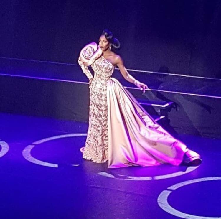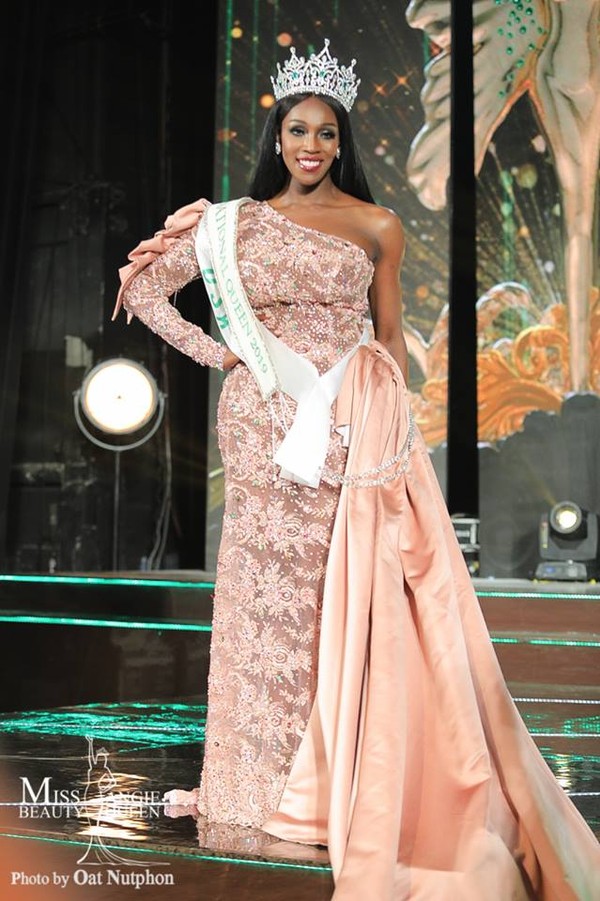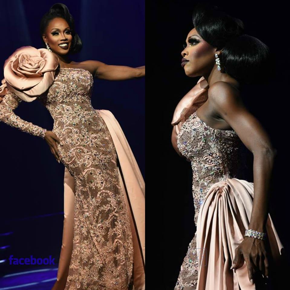 Với dàn da màu đặc trưng thì thiết kế gam màu hồng mang lại sự tương phản giúp cô nổi bật nhất trong đêm chung kết.